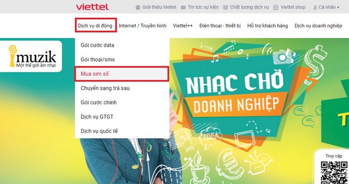 • Bước 2: Chọn Dịch vụ di động > Chọn Mua sim số
