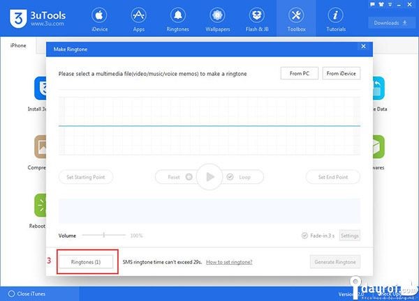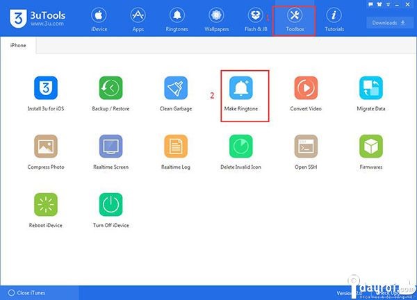 Vào tab Toolbox > Make Ringtone.