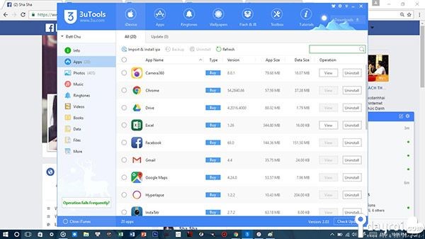 3uTools là một công cụ miễn phí được phát hành bởi 3uTeam, giúp kết nối và thực hiện các giao tiếp giữa máy tính với thiết bị iOS (chẳng hạn như copy ảnh, nhạc, tạo nhạc chuông,…)