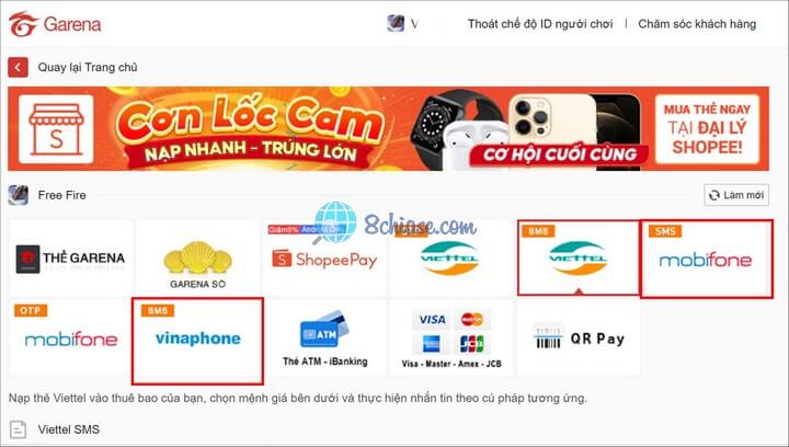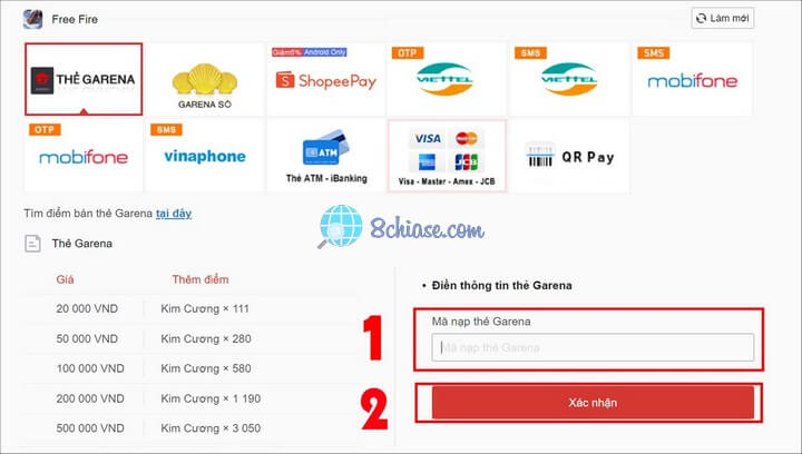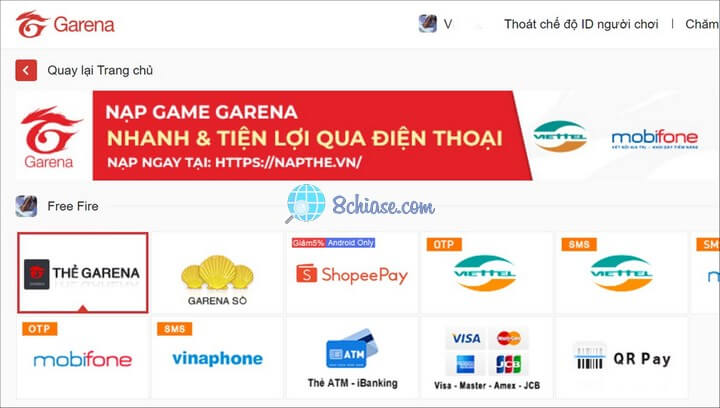 Như vậy 8chiase.com vừa tổng hợp lại 6 cách nạp thẻ Free Fire (FF) thông qua trang napthe.vn an toàn nhanh chóng được vận hành bởi Garena mọi người thấy cách nào thuận tiện thì áp dụng nhé !