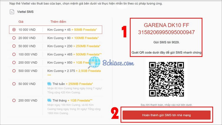 - Bước 1 : Chọn hình thức thanh toán qua SMS nhà mạng Viettel, MobiFone hoặc VinaPhone mà bạn đang sử dụng.