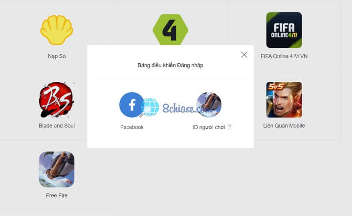 - Bước 2 : Đăng nhập bằng tài khoảng Facebook hoặc bằng id nhân vật trong game.