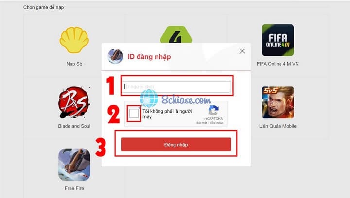 - Bước 3 : Nhập ID người chơi vào sau đó chọn tôi không phải người máy sau đó chọn Đăng Nhập