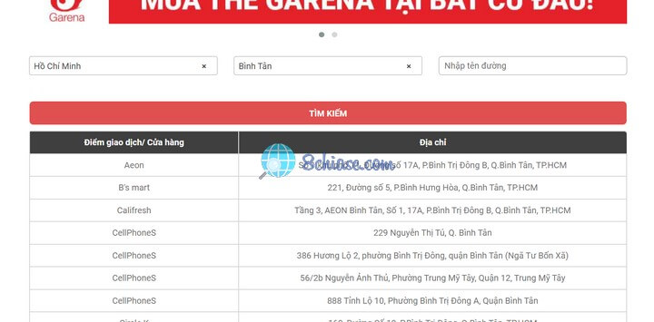 tại đây-> Chọn nơi bạn cần tìm mua thẻ gồm Tỉnh/Thành phố, Quận/Huyện, đường > Chọn Tìm kiếm.