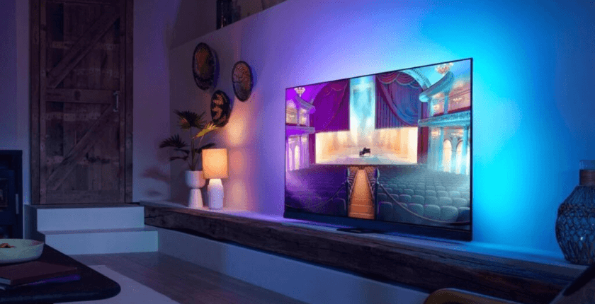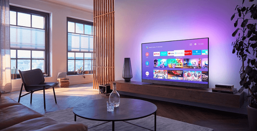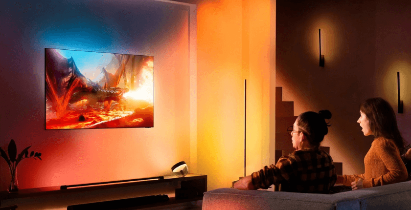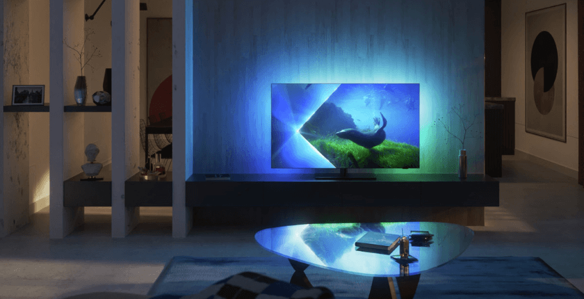 Đặc biệt, một trong những điểm nhấn ấn tượng của Tivi Philips chính là công nghệ Ambilight. Công nghệ này tạo ra một dải ánh sáng xung quanh màn hình, đồng bộ với những hình ảnh hiển thị, giúp không gian xung quanh bạn cũng trở nên sống động như chính nội dung trên màn hình. Khi xem phim hoặc chương trình yêu thích, bạn sẽ cảm nhận được sự hòa quyện giữa ánh sáng và hình ảnh, khiến trải nghiệm giải trí trở nên thú vị và đắm chìm hơn bao giờ hết. Ambilight không chỉ làm cho hình ảnh thêm phần ấn tượng mà còn giúp tạo ra một không gian ánh sáng dễ chịu, nâng cao cảm xúc và sự tương tác của người xem với nội dung đang phát.