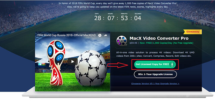 Bước 1: Truy cập liên kết Predict World Cup 2018 Winner, Win MacX Video Converter Pro 1-Year License và nhấn nút Get Licensed Copy of Key để tải về file cài đặt kèm mã kích hoạt bản quyền