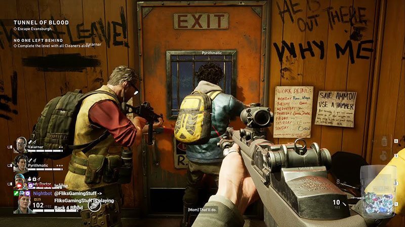 Back 4 Blood sở hữu gameplay tương tự Left 4 Dead, nhiệm vụ của bạn là kết hợp cùng 3 người chơi khác để tạo thành một team 4 người, tiêu diệt đám thây ma trong chặng đường tiếp cận các căn phòng an toàn khác nhau.