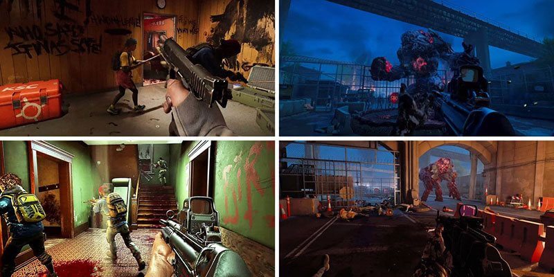 Với cách biệt về thời gian của 2 tựa game, rõ ràng sự so sánh về mặt đồ họa giữa L4D và B4B sẽ là vô cùng khập khiễng thế nên chúng ta chỉ nên đánh giá tựa game mới này trên các quy chuẩn hiện nay. Thật lòng mà nói, Back 4 Blood không hẳn là một tựa game kinh dị mà chỉ đơn thuần là một tựa game bắn súng lấy đề tài zombie, thế nên các cảnh bắn súng trong game thật sự rất đã mắt và chân thật. Ngay cả khi chuyển đổi sang khoảng cách xa hay gần thì mọi thứ đều rất rõ nét. Đặc biệt là các loại vũ khi đều có công dụng trong một phạm vi nhất định như súng trường hiệu quả ở tầm xa và ngược lại thì không gì tuyệt vời hơn một khẩu shortgun ở tầm gần. Cá nhân mình thì cảm thấy việc có thêm súng tỉa là hơi thừa thãi, nhất là khi bạn đang “bơi” giữa bầy zombie.