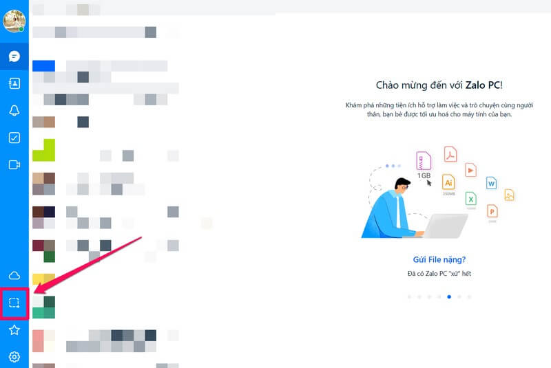 - Bước 2: Truy cập ứng dụng Zalo trên máy tính. Nhìn thanh công cụ bên trái màn hình các bạn chọn icon “Chụp màn hình KHÔNG kèm cửa sổ Zalo”.