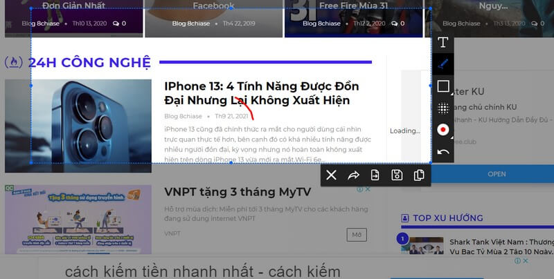 - Bước 4: Sau khi chọn xong vùng màn hình mà bạn muốn chụp lại Zalo sẽ xuất hiện 2 thanh công cụ để bạn có thể tùy chỉnh hình ảnh mà mình muốn chụp lại.