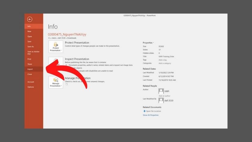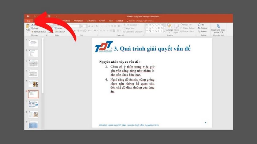 • Bước 1: Bạn hãy mở file trình chiếu PowerPoint mà bạn muốn chuyển sang Word. Sau đó, bạn chọn vào File.