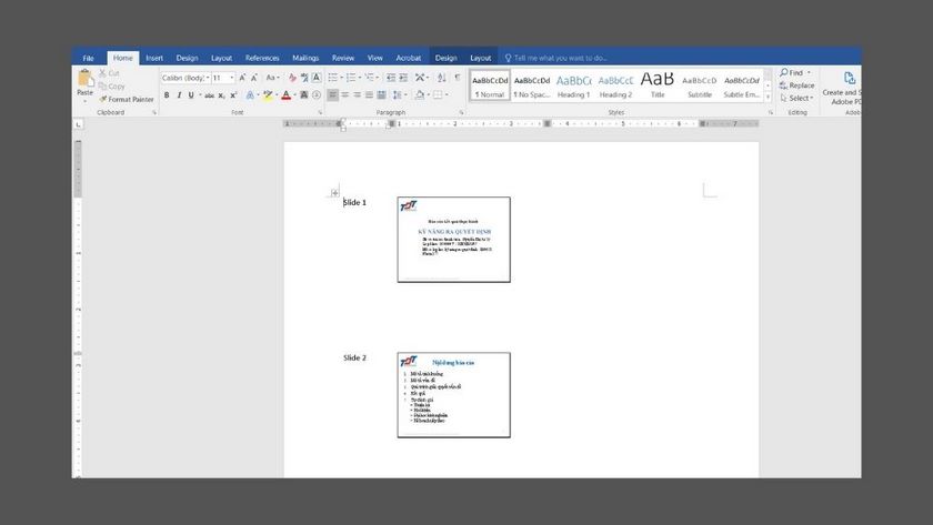 • Bước 6: Lúc này Word sẽ tự động mở và sao chép dữ liệu từ các Slide của PowerPoint. Sau đó, bạn có thể tiến hành chỉnh sửa nội dung và hình ảnh cũng như phóng to thu nhỏ Slide nếu bạn muốn.