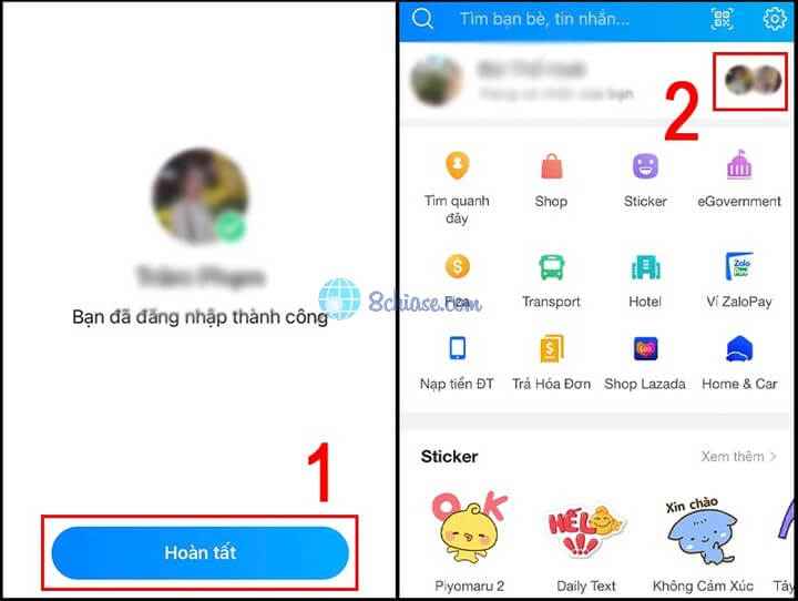 - Bước 4: Đăng nhập xong chọn Hoàn tất > Nhấp vào ảnh đại diện phía góc phải phía trên màn hình để đăng nhập, chuyển đổi nhanh giữa các tài khoảng Zalo với nhau.