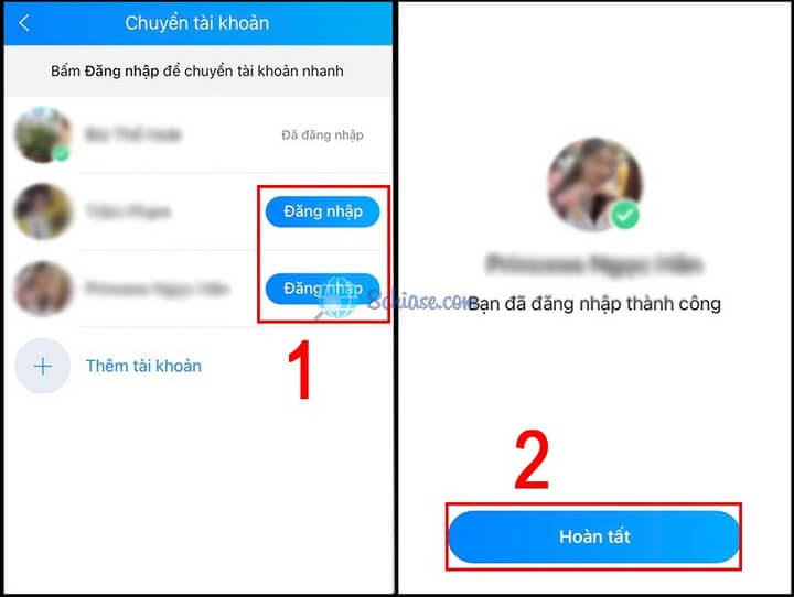 - Bước 5: Chọn Đăng nhập vào tài khoảng mà bạn muốn > Hoàn tất