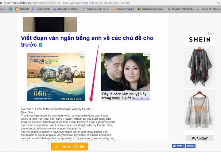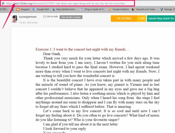 - Bước 1 : Hãy xác định link tài liệu mà bạn muốn tải trên 123doc.org nhé ! Sau khi xác định sau truy cập vào link tài liệu và thêm “text.” và phía trước link tài liệu muốn tải như hình bên dưới.