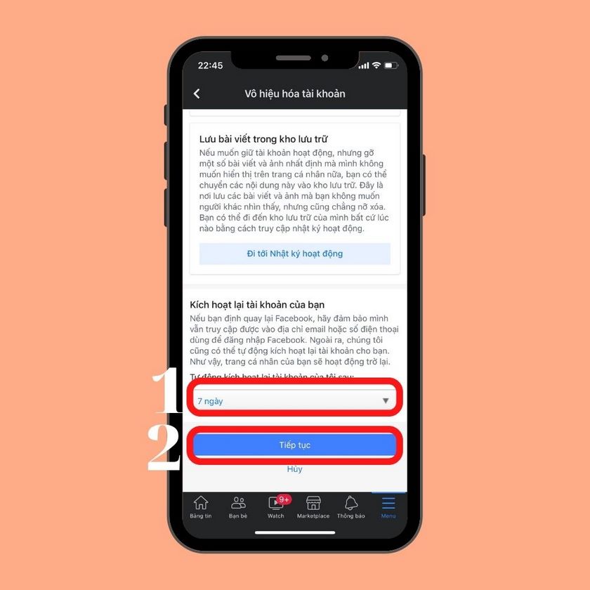 - Bước 6: Lựa chọn ngày kích hoạt lại tài khoản và ấn Vô hiệu hóa.