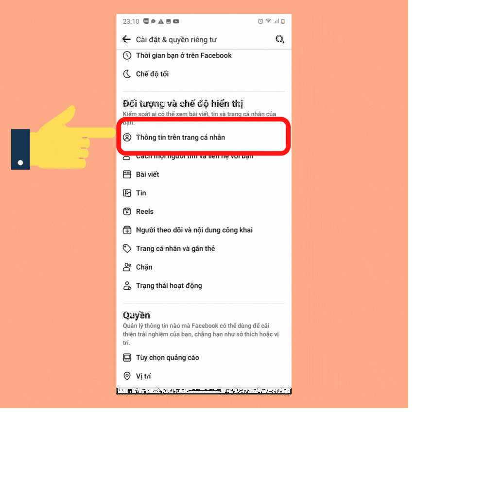 Cách khóa trang trên Facebook tiếp theo thực hiện đơn giản hơn đó là truy cập thẳng vào mục quyền riêng tư. Thực hiện các thao tác sau: