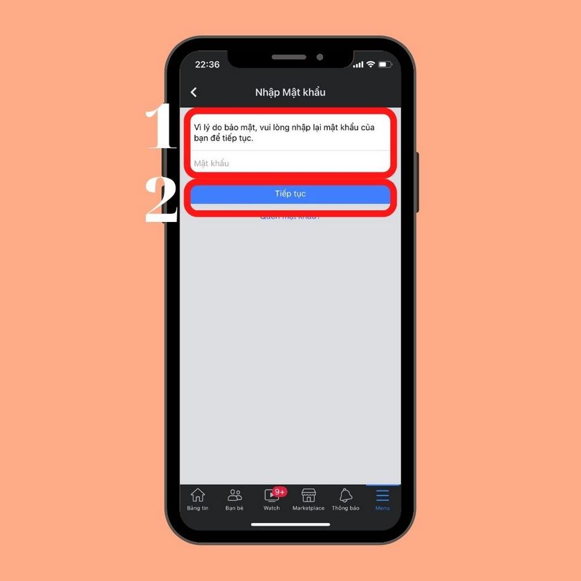 - Bước 5: Nhập mật khẩu tài khoản của bạn vào ô và ấn Tiếp tục.