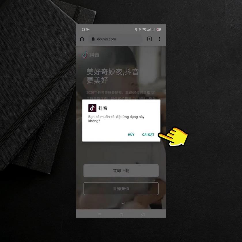 Sau khi tải file APK thành công về điện thoại, hãy mở file từ trình quản lý tệp hoặc từ thông báo tải xuống. Nhấn vào “Cài đặt” và thực hiện theo hướng dẫn trên màn hình để hoàn tất quá trình cài đặt. Một mẹo nhỏ là khi cài đặt thành công, bạn nên kiểm tra lại biểu tượng Douyin trên màn hình chính của điện thoại.