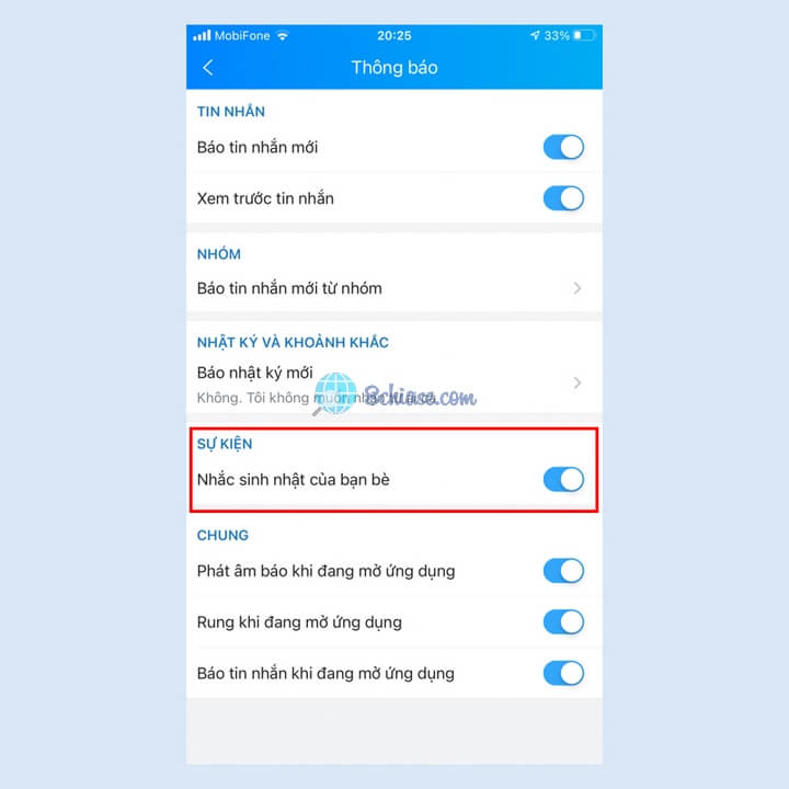 Tắt thông báo sinh nhật của bạn bè trên Zalo