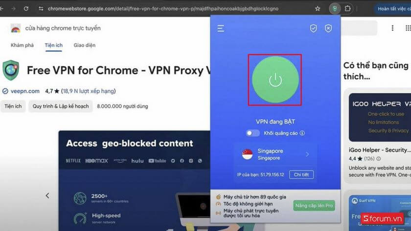- Kích hoạt VPN: Sau khi cài đặt, nhấp vào biểu tượng VPN trên thanh công cụ Chrome và bật VPN.