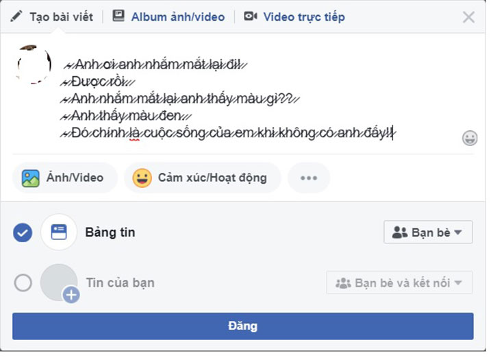 Đầu tiên, bạn đọc cần phải chọn cho mình một đoạn status thật “độc lạ” hoặc “so deep” để đăng tải trong ví dụ này mình sẽ lấy câu