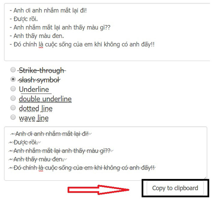 - Với trang Strikethrought, có thể bạn không sử dụng được font chữ khi đăng status bằng máy tính (vẫn dùng trong comment và chat được), nhưng khi đăng bằng smartphone thì được.