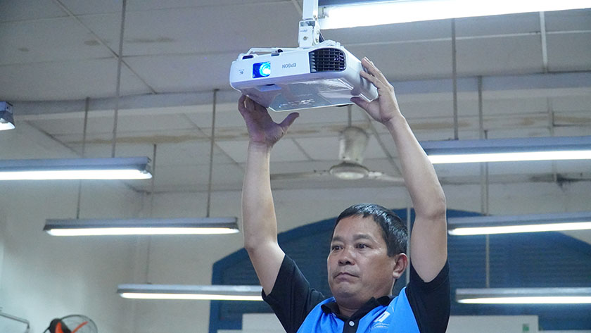 - Trình chiếu linh hoạt hơn: Với máy chiếu treo trần, bạn có thể dễ dàng điều chỉnh và xoay hình ảnh để phù hợp với các yêu cầu trình chiếu khác nhau, bao gồm cả việc trình chiếu lên màn hình rộng hoặc trình chiếu từ các góc độ khác nhau.