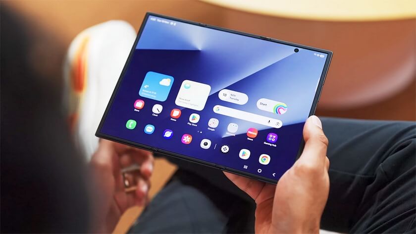 Galaxy Z TriFold được cho là mẫu smartphone gập ba đầu tiên của Samsung, đánh dấu một cột mốc quan trọng trong hành trình phát triển công nghệ màn hình gập. Thay vì cơ chế gập đôi như Galaxy Z Fold hay Z Flip, thiết bị này sở hữu thiết kế gập ba với diện tích hiển thị lớn hơn đáng kể khi mở hoàn toàn.