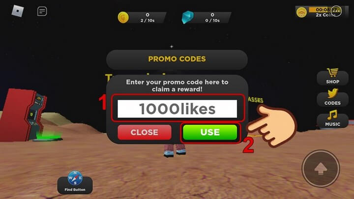 - Bước 3: Nhập code vào ô Enter code và nhấn Use để nhận quà.