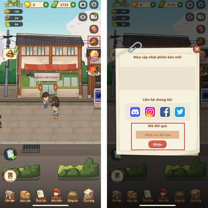 Để nhập code Tiệm Lẩu Đường Hạnh Phúc, bạn hãy thực hiện theo các bước sau:
