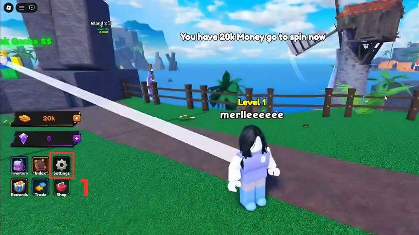 • Bước 2: Đăng nhập Titan Fishing trong Roblox > Sau đó vào Settings