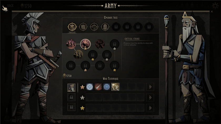 Yếu tố nhập vai của Legendary Hoplite còn được thể hiện ở việc bạn có thể tăng các điểm chỉ số cho nhân vật mỗi khi lên cấp như sức mạnh, sức bền, sự linh hoạt và cả khả năng lãnh đạo. Đồng thời các chỉ số của binh lính cũng có thể được nâng cấp giúp bạn “dễ thở” hơn trong việc xây dựng đội hình phòng thủ.