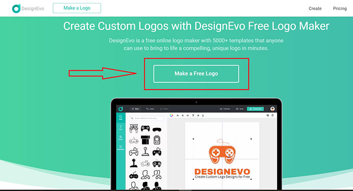 Bước 1 : bạn cần truy cập vào website DesignEvo và nhấn nút “Make a Logo“