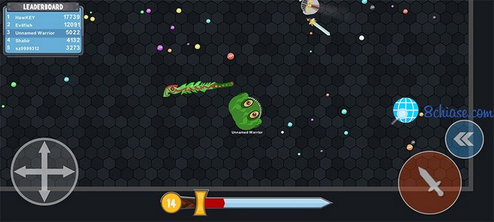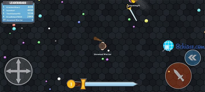 Để tấn công vào những chiến binh EvoWars.io khác bạn hãy chọn vào điểm mù của chúng, đó chính là bên thiếu vũ khí. Khi tấn công như vậy, chúng sẽ khó có thể tấn công lại được bạn đây cũng là bí kíp để bạn có thể hạ đo ván những kẻ thù lớn hơn mình.