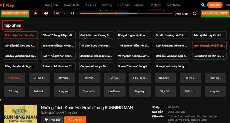 - Bước 4: Mặc định phim sẽ hiển thị tập đầu tiên, bạn có thể chọn đến tập phim mà mình muốn xem.