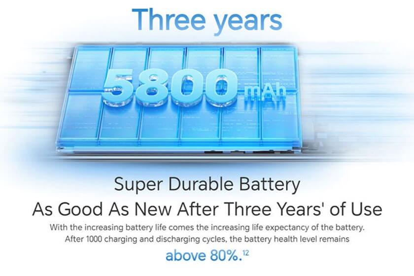 HONOR X9B 5G được trang bị viên pin dung lượng lớn 5.800 mAh, giúp máy có thời lượng sử dụng lâu dài. Với viên pin này, người dùng có thể thoải mái sử dụng điện thoại cả ngày dài mà không lo hết pin.