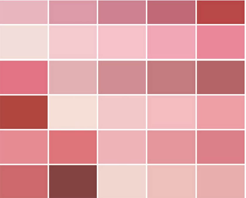 Thuận theo bảng màu này, bạn chỉ cần thay đổi tỷ lệ giữa màu đỏ và trắng là có thể tạo ra những sắc độ hồng khác nhau phù hợp với nhiều mục đích sử dụng.