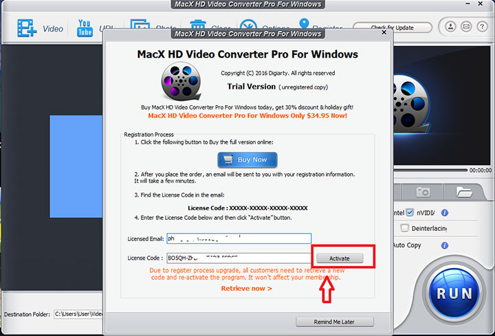 Bước 3: Cài đặt phần mềm và nhập vào mã kích hoạt bản quyền kèm trong file nén MacX Video Converter Pro khi xuất hiện thông báo là xong.