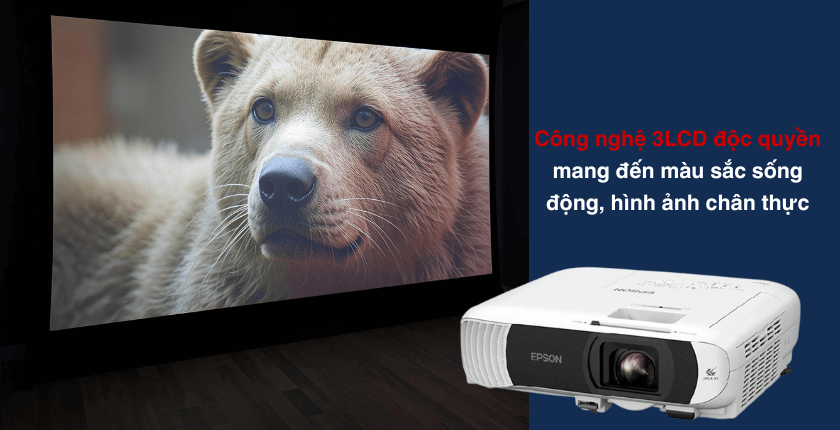 Khác với máy chiếu DLP thông thường, Epson ứng dụng công nghệ 3LCD giúp tái tạo màu sắc chính xác, độ sáng cao và hình ảnh mượt mà, không bị hiện tượng “hiệu ứng cầu vồng”.