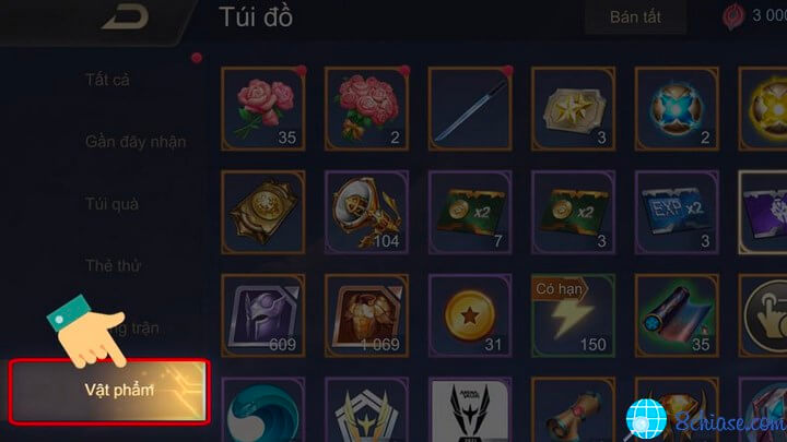 - Bước 1: Tại giao diện chính của game Liên Quân chọn vào Túi đồ