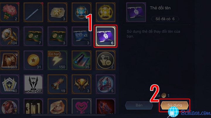 - Bước 3: Chọn Thẻ đổi tên, sau đó nhấn chọn Sử dụng.