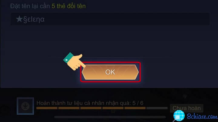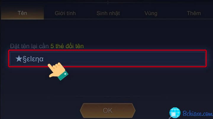 - Bước 6: Điền tên mới vào ô nhớ kết hợp với các kí tự đặc biệt Liên Quân phía trên để tạo ra một cái tên đẹp nhé !