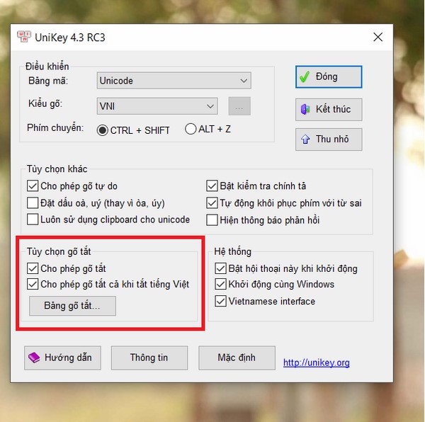 - Cho phép gõ tắt ngay cả khi tắt tiếng việt