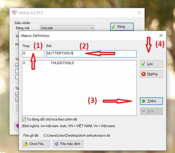 ==>Sau đó hãy click vào “bảng gõ tắt …“