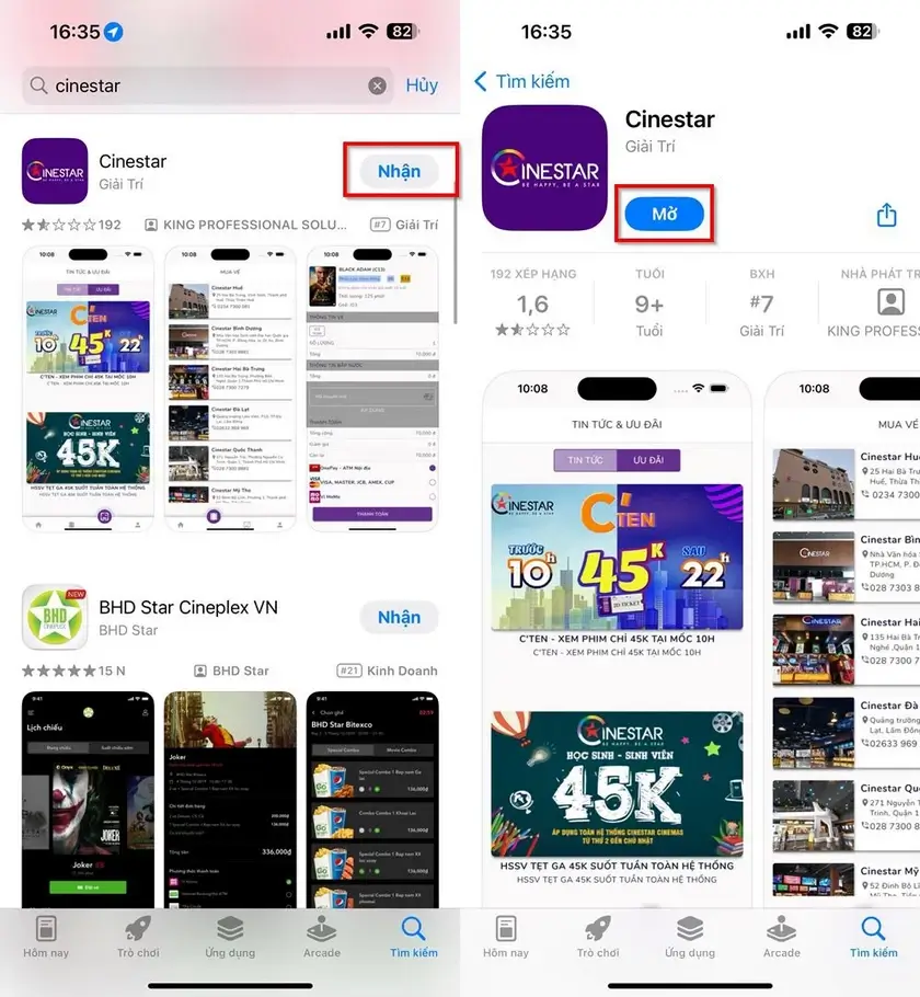 - Bước 1: Bạn truy cập vào App Store hoặc CH Play và tiến hành tải ứng dụng Cinestar về điện thoại > Sau khi tải về, bạn mở ứng dụng lên.
