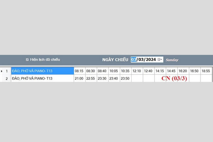 Trang fanpage chính thức của Trung tâm Chiếu phim Quốc gia đã công bố lịch chiếu phim “Đào, Phở, Piano”. Để tiện theo dõi, bạn hãy xem qua dưới đây nhé: