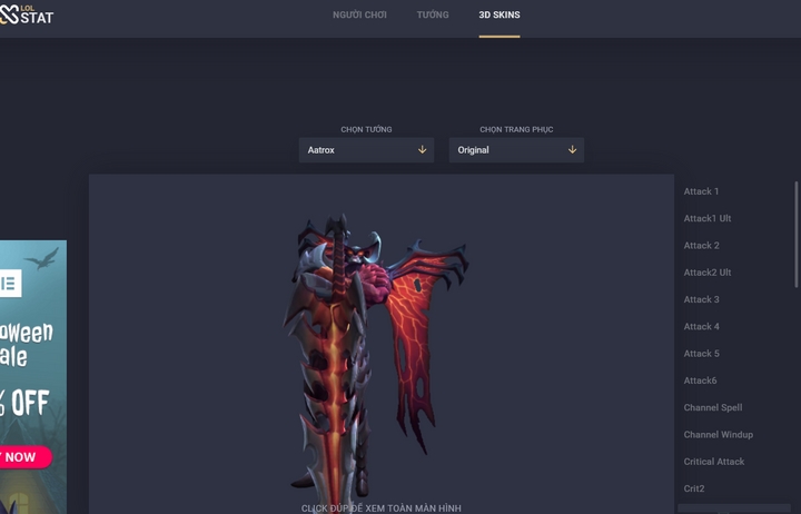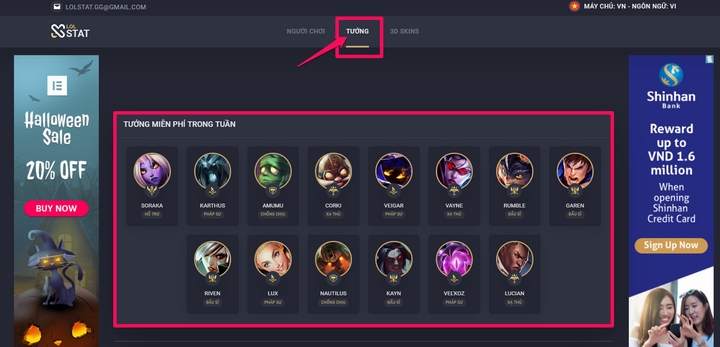 Tại tab tướng Skin các bạn sẽ tra ra cá thông tin sau cho bạn