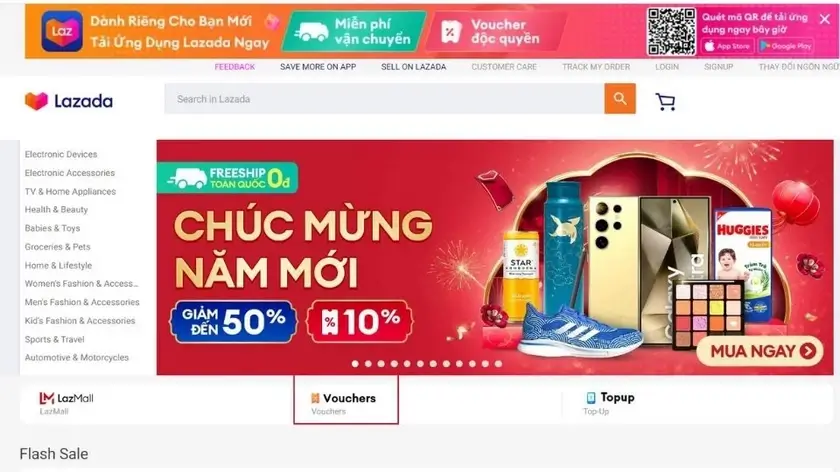 Lấy mã giảm giá trên trang web chính thức của Lazada