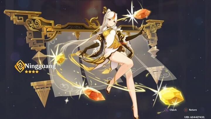 Trước khi đến với vị trí cuối cùng trong danh sách ngày hôm nay, chúng ta có cô nàng Ningguang: Là nhân vật 4 sao hiếm hoi có vai trò dame DPS trong team, mặc dù vũ khí cô sử dụng là Pháp Khí chứ không phải là Trọng Kiếm. Do mang trên mình thuộc tính Nham, thế mạnh của Ningguang là phòng ngự, có thể tạo ra những tấm khiên chắn mạnh mẽ bảo vệ cho bản thân cũng như đồng đội. Ningguang còn có thể tạo những tấm màn chắn giúp đồng đội của mình tránh những đòn tấn công từ kẻ địch và cũng là một nhân vật đánh tầm xa cực kỳ hữu dụng. Chưa dừng lại ở đó, nội tại của cô nàng Ningguang có thể giúp bạn dễ dàng tìm ra những mỏ quặng, mỏ khoáng.